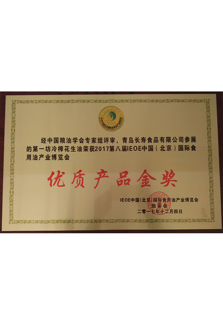 2017年12月 获得中国粮油学会授予的“优质产品金奖”